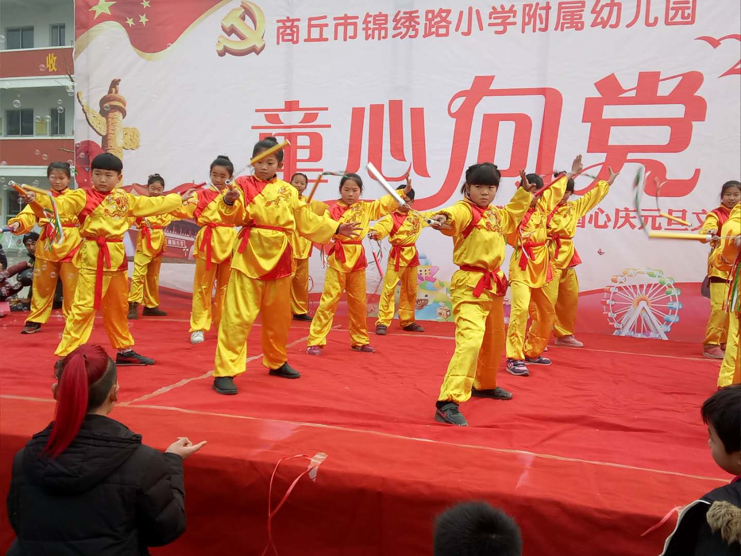 为迎接2018年元旦的到来,进一步展现广大师生积极向上、团结奋进的精神面貌,12月29日下午,商丘市梁园区锦绣路小学举行了红歌唱响爱国心庆元旦文艺汇演活动。