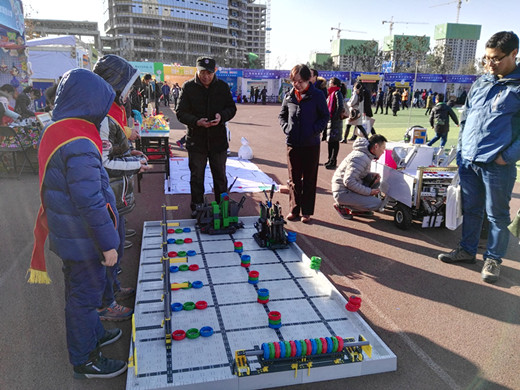 “黄河少年机器人创客俱乐部”的小队员们向领导汇报展演