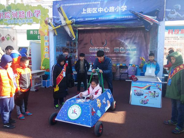 12月16日,2017年郑州市智慧教育暨创客教育文化艺术节成果展在郑州一中经开区实验学校举行。在首批公布的50所郑州市中小学创客教育示范学校中,上街区中心路小学荣获殊荣,有幸成为上街区唯一一家首批获得创客示范校称号的学校。中心路小学参展的航空模型、绿色新能源车、创意科教模型等创客项目受到了参会师生的一致好评,郑州教育电视台也对中心路小学的参展项目进行了专门采访。