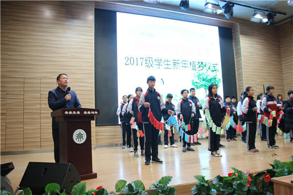 最后,实验中学校长崔随庆用美国28届总统威尔逊实现梦想的故事激励同学们:“人可以清贫,但不能没有梦想,每个人都应有属于自己的梦想,而有了梦想就需付出实际行动,有了行动更需不断地坚持。在梦想的召唤下,每个人都努力着,执着追求,才能实现生命的价值与意义。”