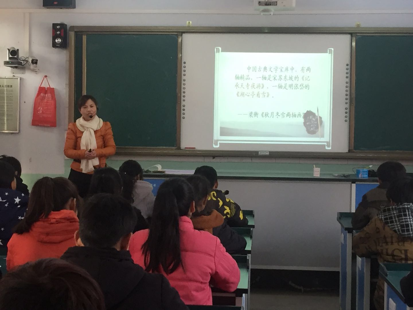 在优美的古文朗诵中,市级优秀教师李晓燕老师的《湖心亭看雪》拉开了序幕。李老师亲切的话语,真诚的微笑,专业的功底,让学生学得轻松快乐,使听课的师生感受了古文的独特魅力。李老师的示范课,设计合理,教学形式新颖,突出了重点,突破了难点,注重了以学生为主体。在师生互动,生生互动上能巧妙处置,充分调动了不同层面学生学习的积极性,学生的思维及能力训练达到了教者预设的教学效果,得到了听课者的一致好评。