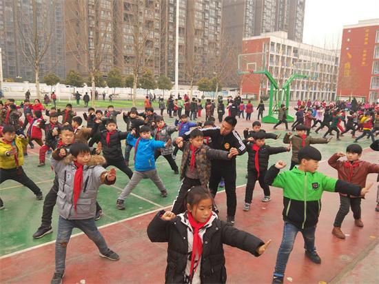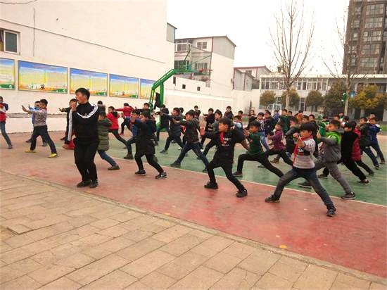 郾城区许洼小学武术进校园“嘿嘿哈哈”练起来